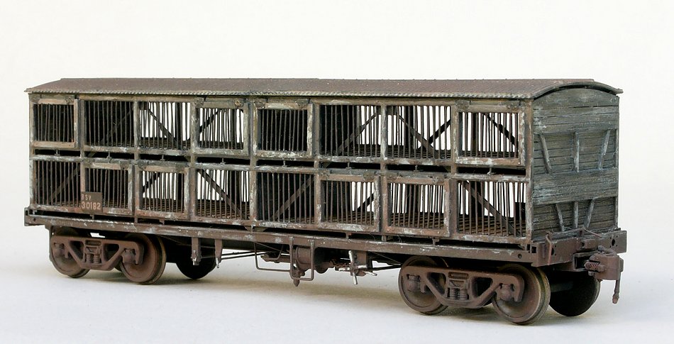 Bogie Sheep Wagon - Built up from two Camco sheep wagons with a scratch built chassis and individual brass bars