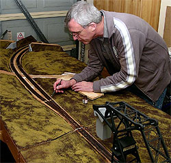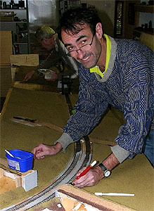 ![]() Sub roadbed (17mm plywoood) and cork getting glued