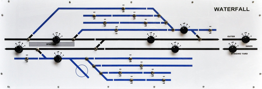 The points are actuated using Tortoise point motors. The layout is designed to be run with either DC or DCC control. Joints across the base boards are were done using PCB strips and PCB sleepers. Rail is laid over the joint, the PCB compnenets fabricated, soldered and up then the track is cut using a small saw. |